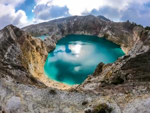8. Tag: Moni - Exkursion zum Kelimutu Vulkan - Ende. In Flores ziehen die drei verschieden gefärbten Kraterseen des Kelimutu-Vulkans Tausende Besucher in ihren Bann. Auffahrt zum mächtigen Vulkan Kelimutu und zu seinen Kraterseen - vor allem frühmorgens ist das spektakuläre Farbenspiel der Seen vom Kraterrand aus gut zu sehen. Aufgrund von Mineralien verändern sich die Farben von Türkisgrün und Blau bis hin zu Rotbraun. Unsere Route führt in weiterer Folge durch ein spektakuläres Flusstal aus den Bergen heraus zur Südküste nach Ende. Unterwegs sehen wir traditionelle Dörfer sowie Gewürznelken-, Kakao- und Kaffeeplantagen.