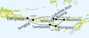 ! HINWEIS: Nusa Tenggara ist nicht nur eines der schönsten und ursprünglichsten, sondern auch eines der touristisch unerschlossensten Gebiete in Indonesien. Schlechte Straßen, langsame Verkehrsmittel und unpünktliche Flüge erschweren die Einhaltung des Programmes. Eine gute körperliche Kondition und Ausdauer sind Voraussetzung. Örtliche Gegebenheiten können Programm-Änderungen zwingend notwendig machen. Da Inlandsflüge öfters vom Flugplan abweichen, müssen wir flexibel bleiben und notfalls auf ein Fährschiff ausweichen. Auf diese Umstände sollte man sich einstellen, dafür erlebt man eine noch unberührte einzigartige Inselwelt.
