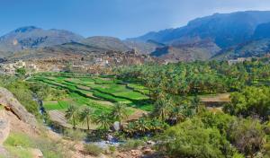 4. Tag: Nizwa - Ausflug Birkat al Mauz - Jebal Akhdar. Am Vormittag erkunden wir Nizwa mit seiner Festungsanlage sowie den Souk, der für seinen Silberschmuck bekannt ist. Zusätzlich besuchen wir das erst 2023 eröffnete Oman Across Ages Museum nahe Nizwa. Die Gebirgslandschaft des Nordoman wird beherrscht vom al-Hadjar-Gebirge, einem Paradies für Geologen. Durch seine Höhe fängt sich im Gegensatz zu anderen Regionen der Arabischen Halbinsel viel Regen, der durch ein System von Bewässerungskanälen Hunderte kleine Bergoasen mit Wasser versorgt. Seit 2500 Jahren wird das Wasser konsequent gesammelt und nach sozialen Regeln verteilt. Dieses Aflaj-Bewässerungssystem (UNESCO-Welterbe) lernen wir in einigen Orten kennen. Wir besuchen die Oase Birkat al Mauz inmitten einer saftig grünen Oase und fahren auf der geteerten Straße weiter auf den „Grünen Berg“, den Jebal Akhdar. Wir genießen die Ausblicke und kehren nach einem „Village-Walk“ am Abend nach Nizwa zurück.