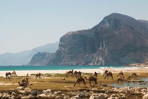 4. Tag: Wadi ash Shuwaymiyyah - Thumrait. Am Morgen nehmen wir uns Zeit für die fast paradiesische Umgebung, denn später fahren wir über den Ort Shalim Richtung Norden in die flache, fast vegetationslose Steinwüste Jiddat al Harasis. Nur selten sind größere Gewächse wie Akazien- und Ghaf-Bäume zu sehen. Die Region ist für die zahlreichen Meteoritenfunde sowie Gas- und Ölfelder bekannt. Die zum Teil seltenen Wüstentiere werden sich tagsüber wohl kaum zeigen. Nach Amal folgen wir der Straße Richtung Westen nach Thumrait.