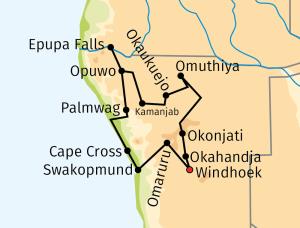 9. Tag: Opuwo - Epupa Falls. Etwas nördlich von Opuwo liegt das Ovahimba Living Village Museum, wo wir mehr über das traditionelle Leben der Himba erfahren. Die Ovahimba (kurz Himba) sind eine Bevölkerungsgruppe aus der Kunene-Region, die traditionell von Viehzucht, Jagd und Sammeln lebt. Wir erleben die als Halbnomaden lebenden Ovahimba mit ihren zu Zöpfen geflochtenen Haaren, dem Lendenschurz, der mit Ocker und Butter getönten Haut, in ihren aus Ästen und Lehm errichteten Hütten. Durch die endlose Weite Nordnamibias erreichen wir am Nachmittag die beeindruckenden, etwa 40 m hohen Epupa Falls. Wir unternehmen einen Spaziergang entlang der gewaltigen Schlucht, die der Kunene – der Grenzfluss zwischen Namibia und Angola – im Laufe von Jahrmillionen geschaffen hat, und sehen die zahllosen Kaskaden, die malerisch zwischen Makalani-Palmen in die Tiefe stürzen, den sicherlich unberührtesten Teil Namibias.