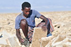 3. Tag: Addis Abeba - Semera - Salzsee Afdera. In den frühen Morgenstunden Inlandsflug von Addis Abeba nach Semera, die Hauptstadt der Provinz Afar. Hier werden wir vom Expeditionsteam begrüßt - wir fahren durch das vulkanische Gebiet von Semera bis zum Salzsee Adera. Aufgrund der Hitze nächtigen wir am Rande des Salzsees unter freiem Himmel auf einfachen Liegebetten. Für die Hygiene steht ein Toilettenzelt mit Plumpsklo für unsere Gruppe bereit, Wasser zum Frischmachen gibt es aus dem Kanister bzw. aus Flaschen.