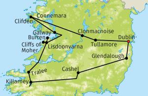 9. Tag: Clifden - Clonmacnoise - Tullamore Whiskey Distillery - Dublin. Wir durchqueren nochmals die urwüchsige Landschaft der Connemara Richtung Galway und erreichen Clonmacnoise, wo wir die Überreste der berühmten Klosteranlage des Hl. Kieran mit schönen Hochkreuzen besuchen. Weiterfahrt nach Tullamore - Besichtigung der Tullamore Whiskey-Distillery, natürlich mit Whiskey-Verkostung. Am Nachmittag Fahrt nach Dublin, wo noch Zeit für einen kurzen Spaziergang durch die schöne Innenstadt, mit Temple Bar District, Ha’penny Bridge und Trinity College bleibt.
