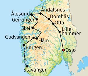Die kontrastreiche Landschaft Südnorwegens wird Sie auf dieser Reise begeistern: tiefe Fjorde, eingerahmt von hoch aufragenden Berggipfeln, Wasserfälle, grüne Kulturlandschaften, Gletscher und malerische Orte. Zahlreiche Sehenswürdigkeiten beeindrucken in der quirligen Hauptstadt Oslo, die schöne Altstadt von Stavanger fasziniert mit ihren schönen Holzhäusern ebenso wie das Altstadtviertel Bryggen in Bergen und die Jugendstilstadt Ålesund. Eine Wanderung auf den 600 m hohen Preikestolen bietet unbeschreibliche Ausblicke auf den Lysefjord und von der Adlerstraße mit ihren engen Serpentinen genießen wir die Sicht auf den beeindruckenden Geirangerfjord, den angeblich schönsten Fjord Norwegens. Einer der Höhepunkte der Reise ist die Schifffahrt am beeindruckenden Nærøyfjord, dem engsten Fjord Norwegens, der von steilen Berghängen eingerahmt wird. Er zählt gemeinsam mit dem Geirangerfjord zum UNESCO-Welterbe.