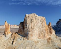 Nahe der Küste des Kaspischen Meers finden wir in der kasachischen Region Mangghystau im Ustyurt- Massiv einzigartige Badland-Landschaften, die man üblicherweise aus dem Westen der USA kennt. Gestreifte Hänge, wild erodierte Felsmassive, strahlend weiße Canyons, ein Gebirgszug wie der Rücken eines Drachens - atemberaubend schöne Motive, für die wir für einige...